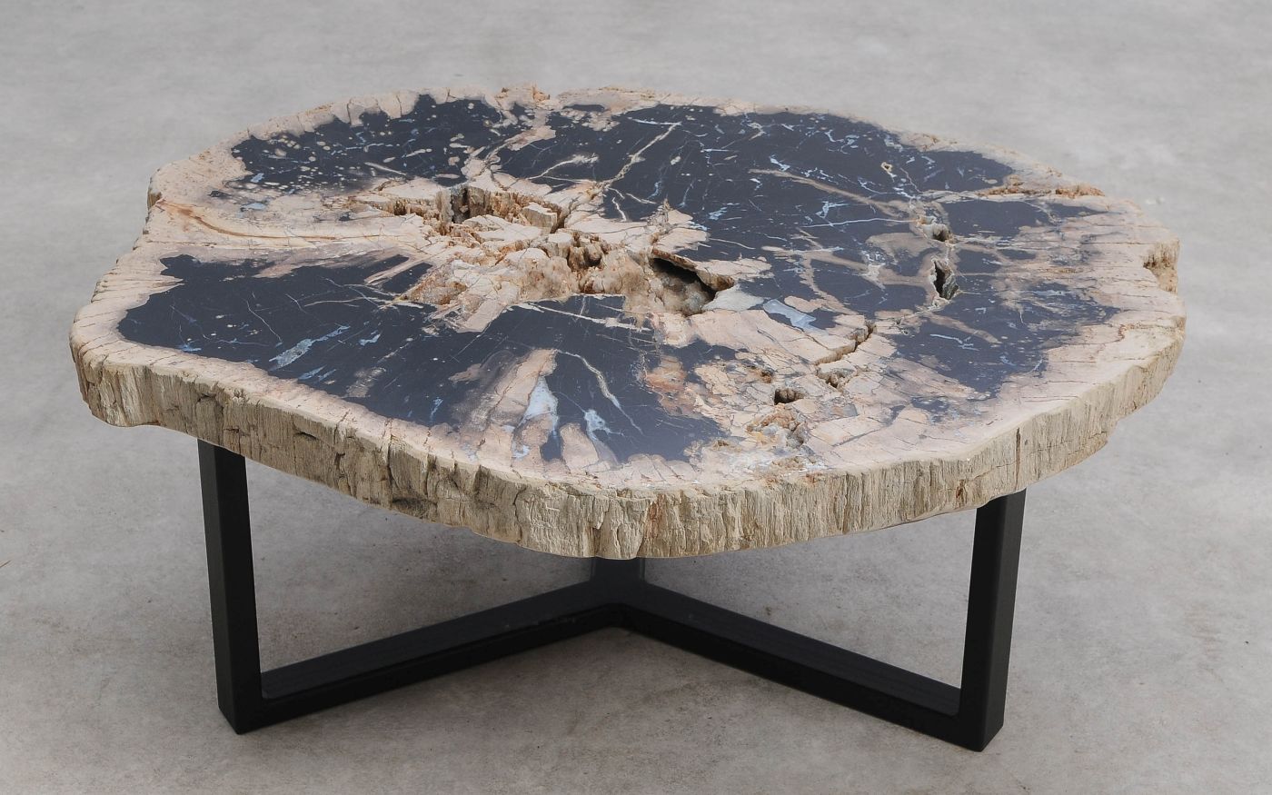 Het is erg moeilijk de schoonheid van versteend hout in een foto te vatten. We nodigen u daarom van harte uit deze salontafel in onze showroom te komen bekijken, maar bestellen via de website kan natuurlijk ook.