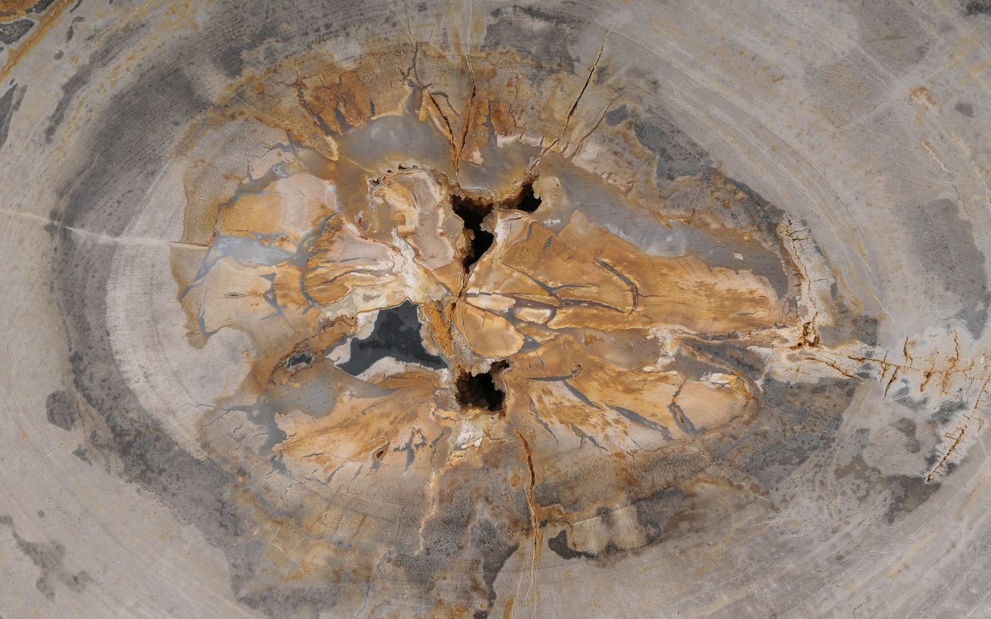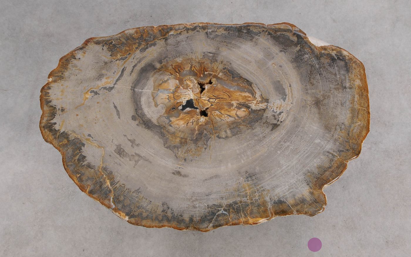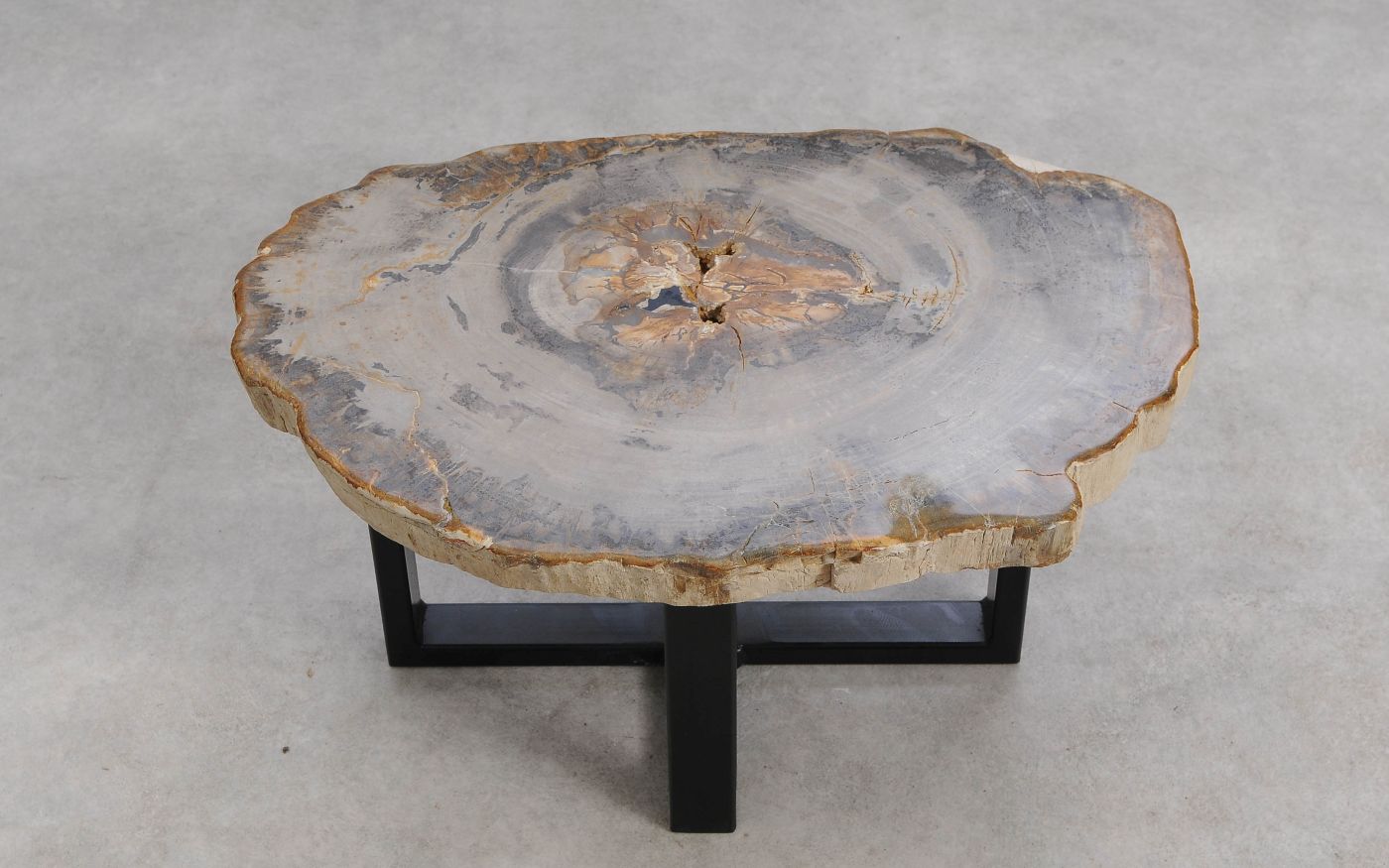 Deze unieke salontafel van versteend hout past in ieder interieur. Het tafelblad is gezaagd uit een grote versteende boom, die ongeveer 20 miljoen jaar geleden geleefd heeft. De kleuren zijn bepaald door de mineralen die het hout van deze boom vervangen hebben.