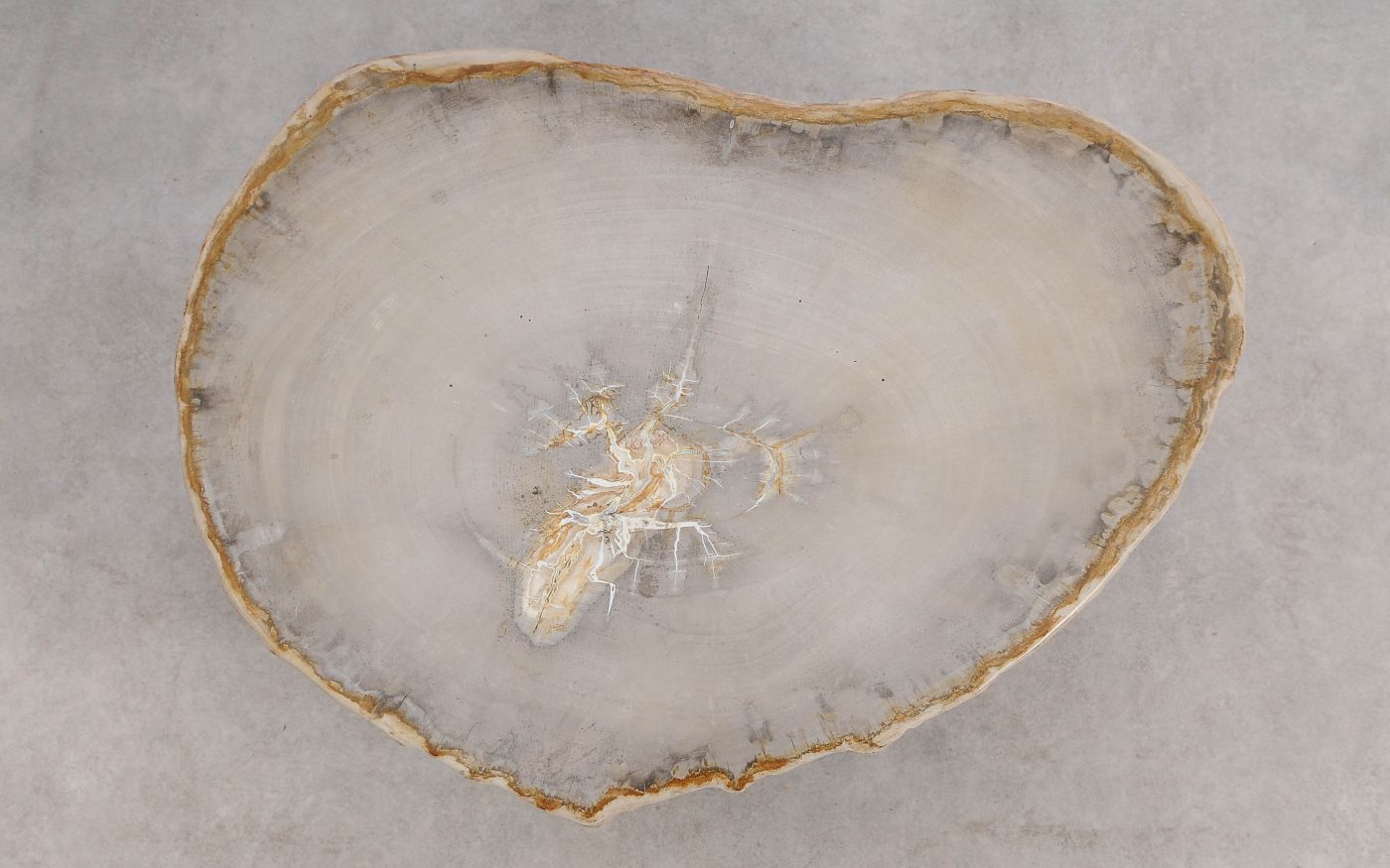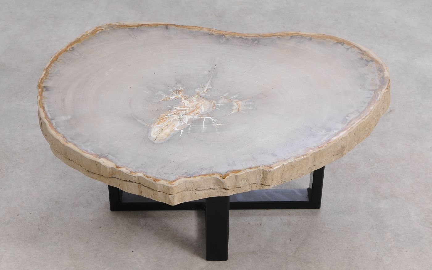 Deze unieke salontafel van versteend hout past in ieder interieur. Het tafelblad is gezaagd uit een grote versteende boom, die ongeveer 20 miljoen jaar geleden geleefd heeft. De kleuren zijn bepaald door de mineralen die het hout van deze boom vervangen hebben.