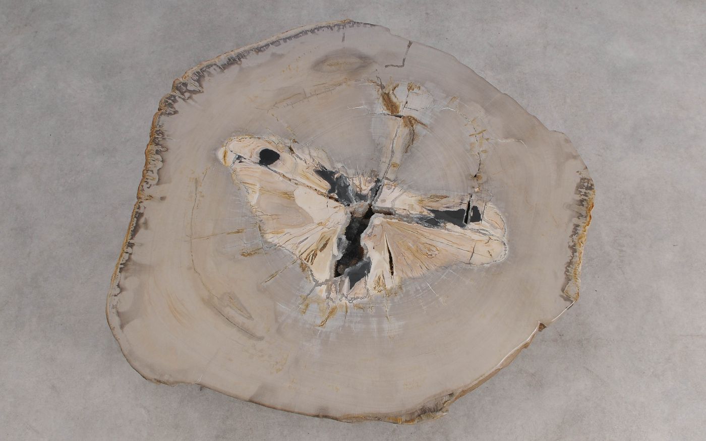 Het is erg moeilijk de schoonheid van versteend hout in een foto te vatten. We nodigen u daarom van harte uit deze salontafel in onze showroom te komen bekijken, maar bestellen via de website kan natuurlijk ook.