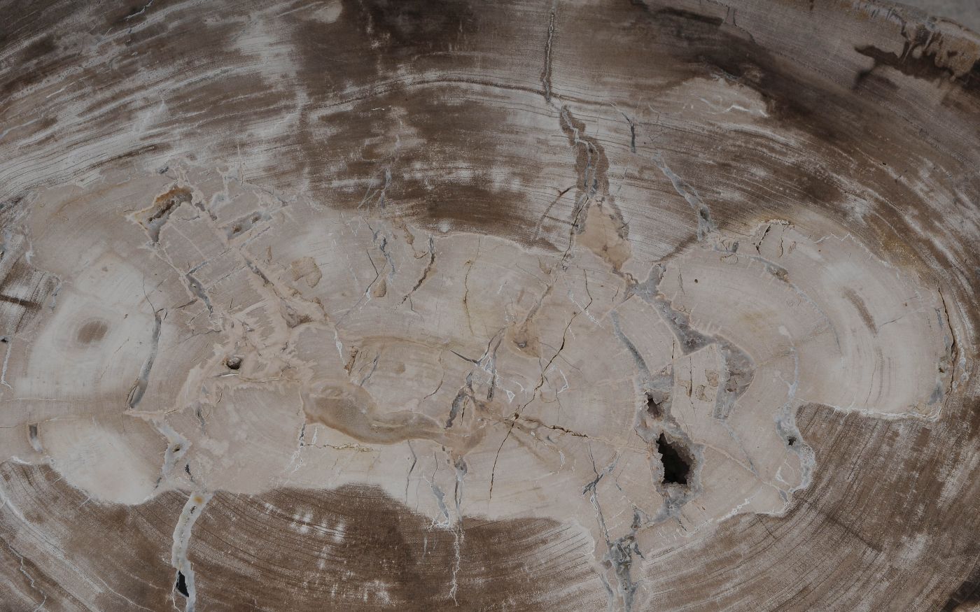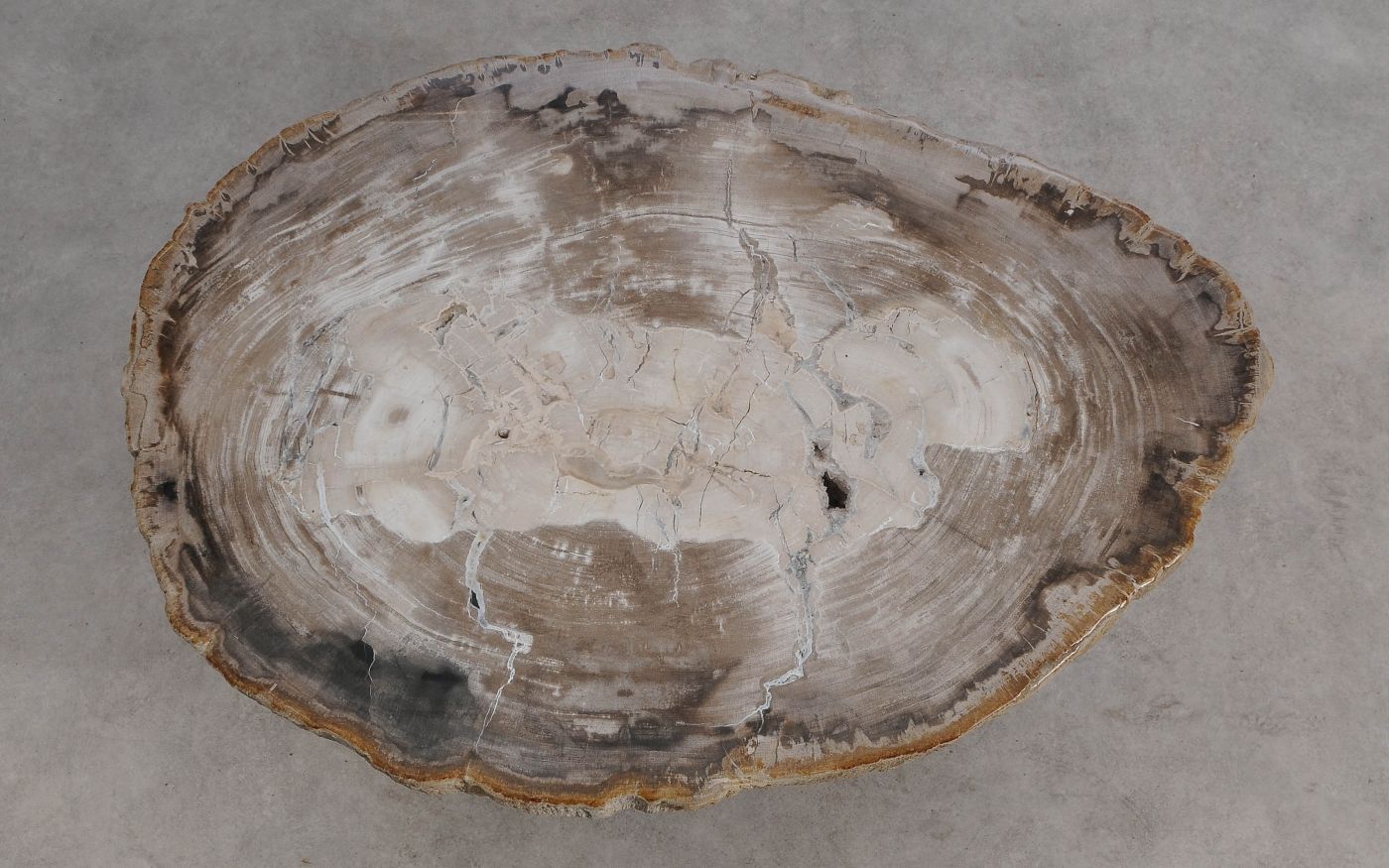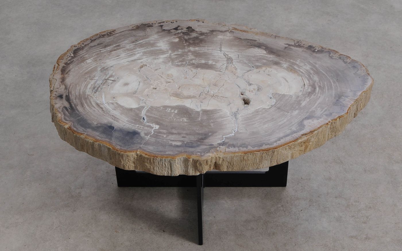 Deze unieke salontafel van versteend hout past in ieder interieur. Het tafelblad is gezaagd uit een grote versteende boom, die ongeveer 20 miljoen jaar geleden geleefd heeft. De kleuren zijn bepaald door de mineralen die het hout van deze boom vervangen hebben.