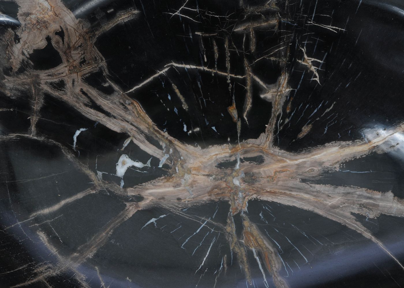 - Kleuren versteend hout: Gemengde kleuren, Voornamelijk zwart