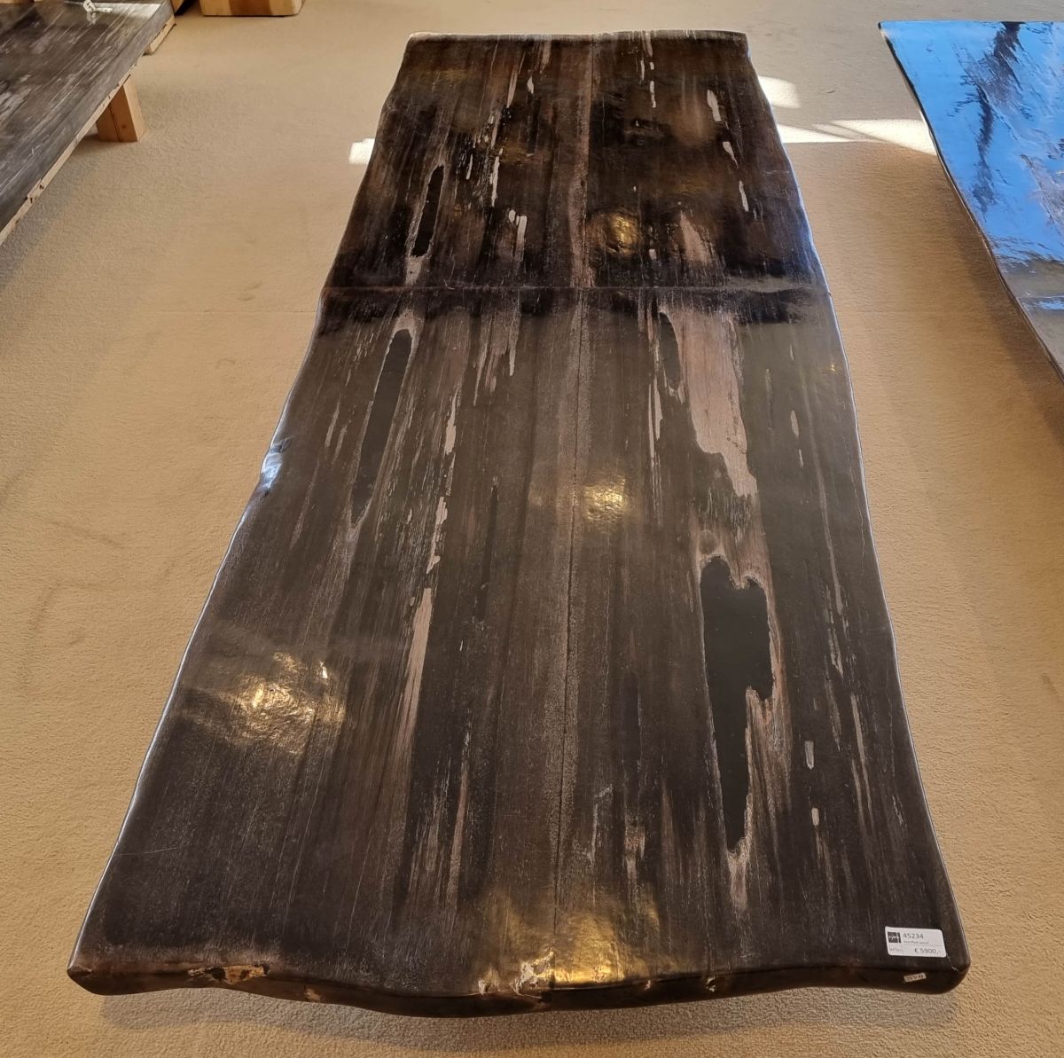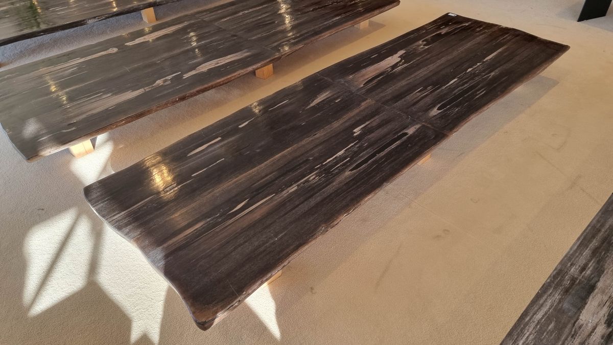 Het is erg moeilijk de schoonheid van versteend hout in een foto te vatten. We nodigen u daarom van harte uit deze tafel in onze showroom te komen bekijken, maar bestellen via de website kan natuurlijk ook.