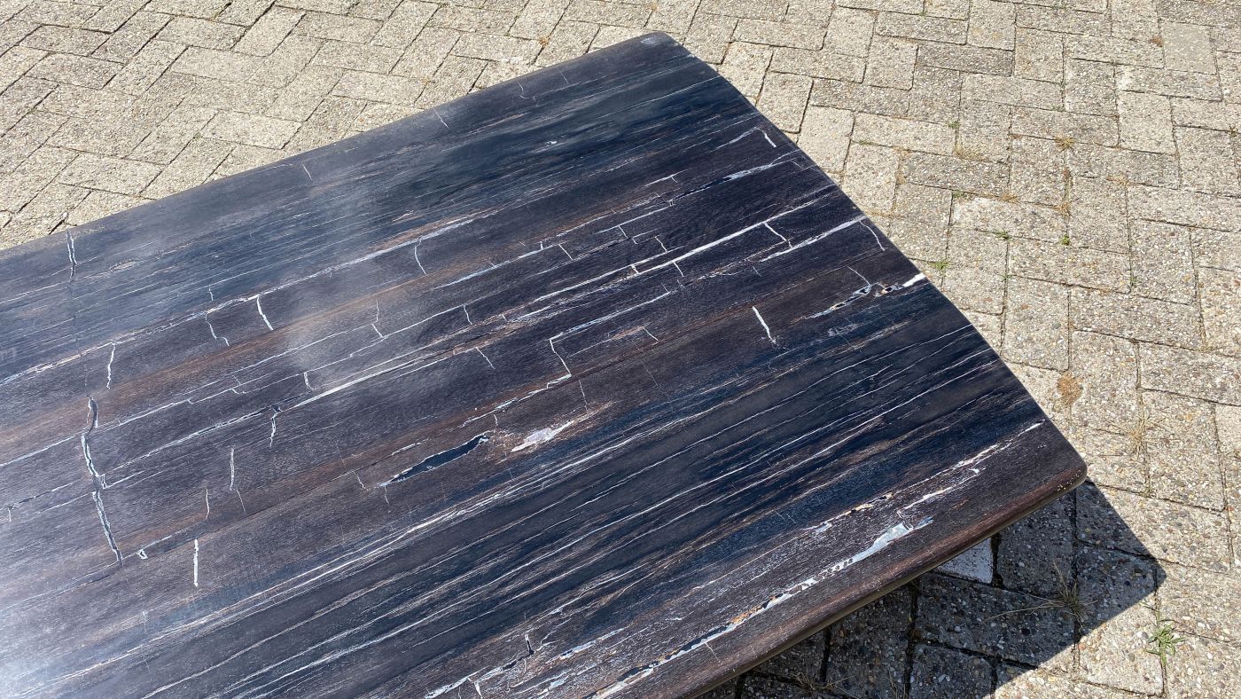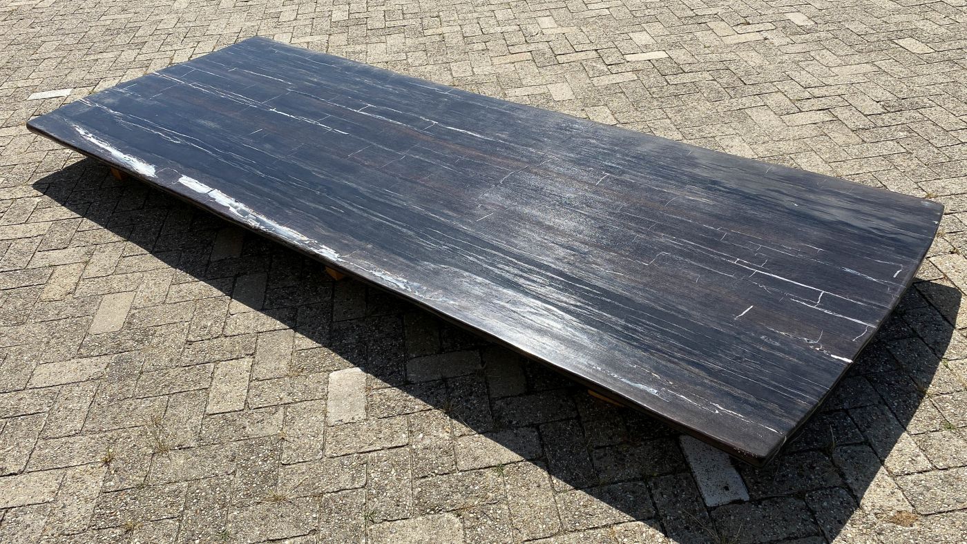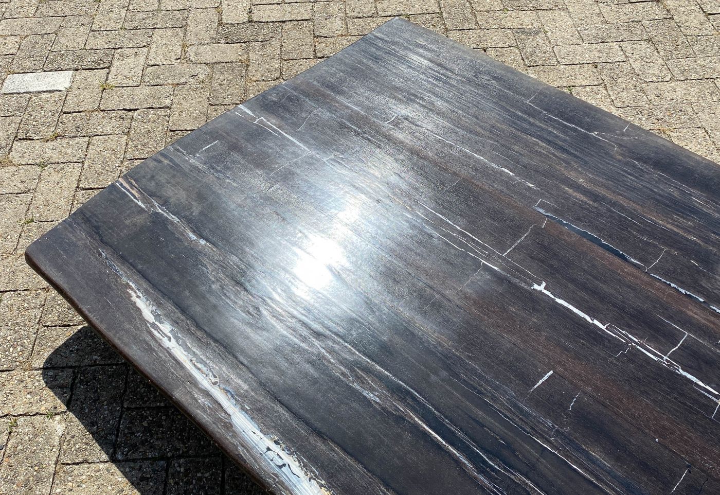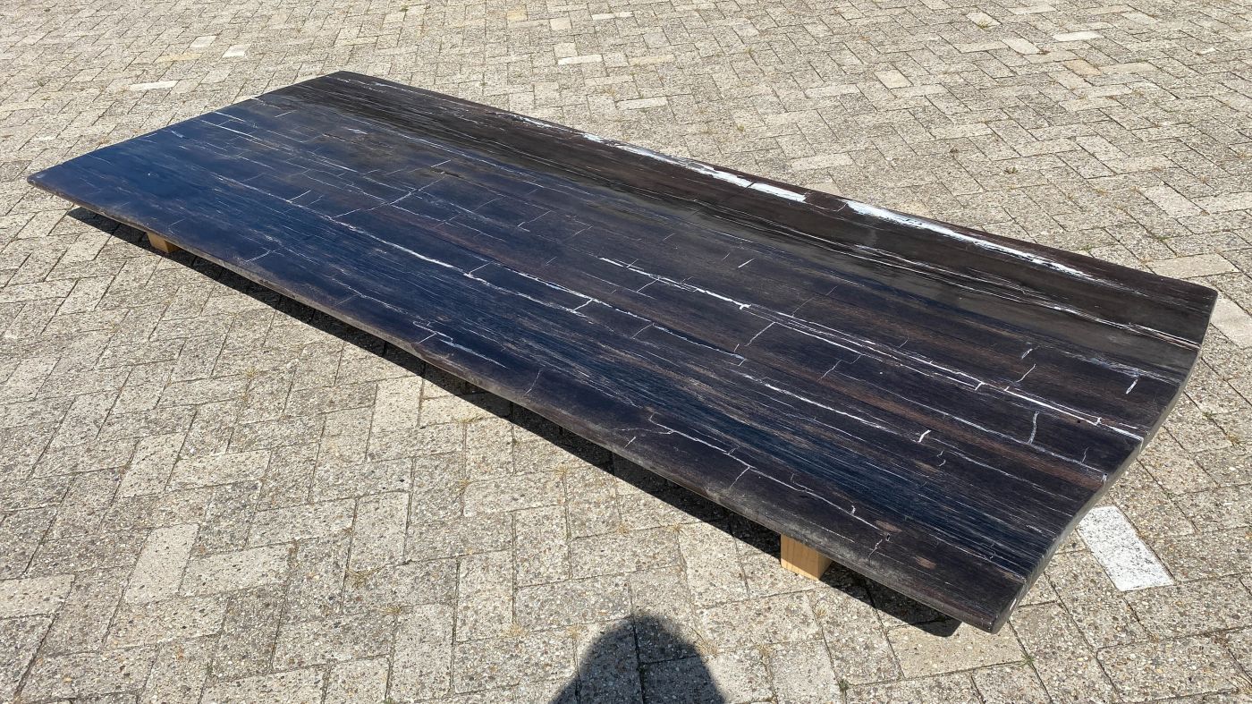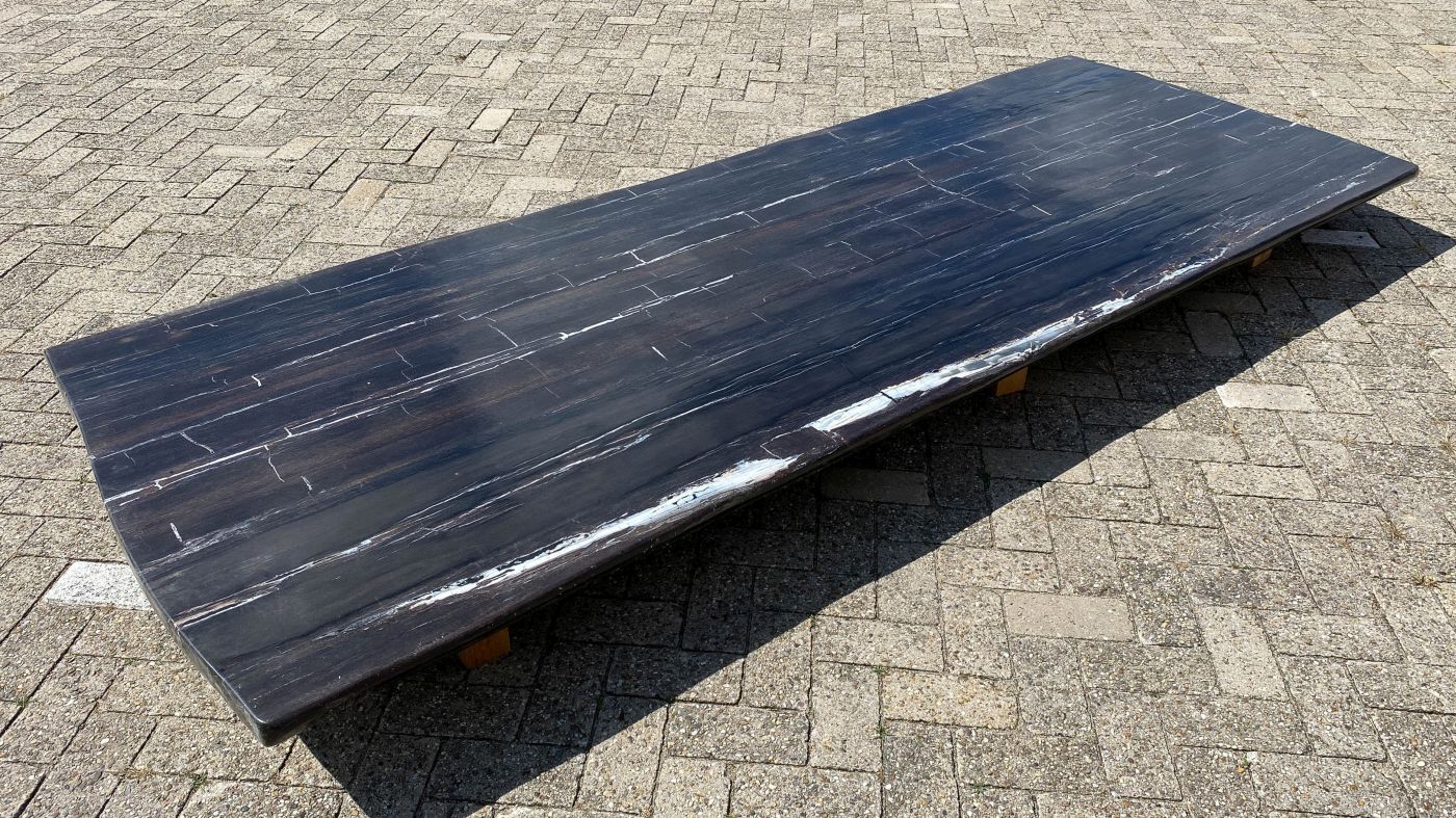 Het is erg moeilijk de schoonheid van versteend hout in een foto te vatten. We nodigen u daarom van harte uit deze tafel in onze showroom te komen bekijken, maar bestellen via de website kan natuurlijk ook.