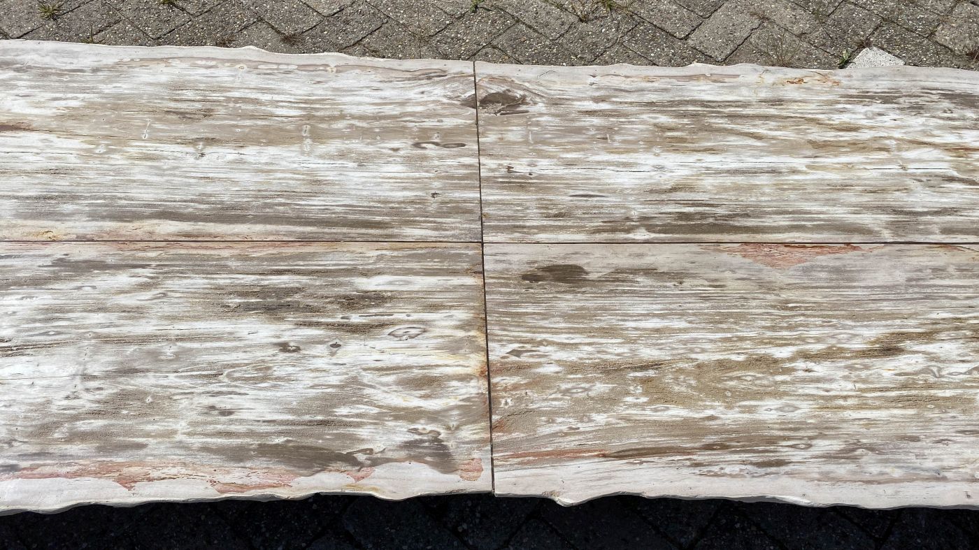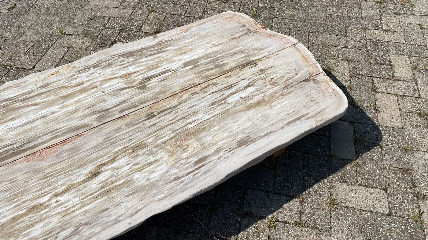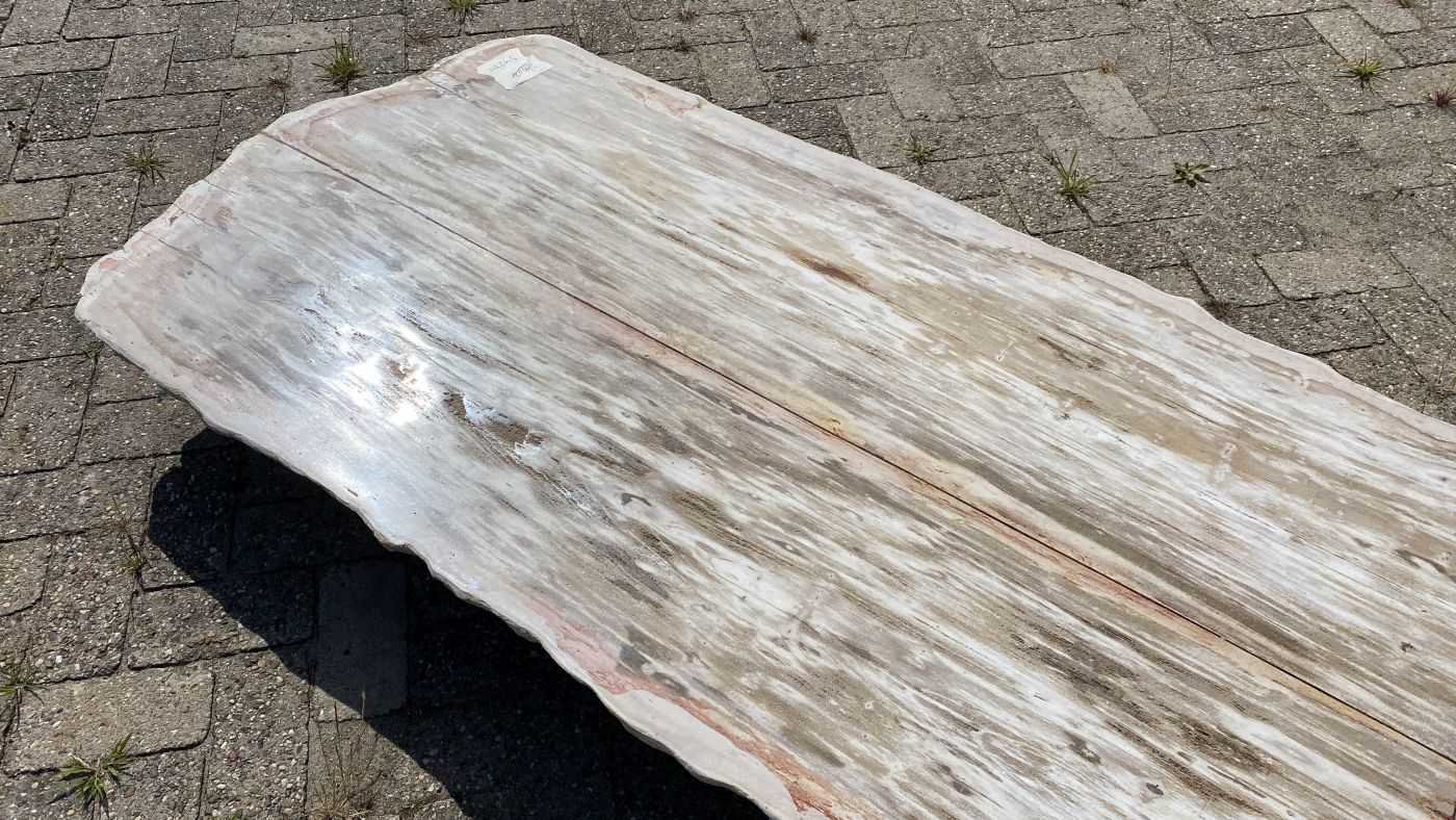 Het is erg moeilijk de schoonheid van versteend hout in een foto te vatten. We nodigen u daarom van harte uit deze tafel in onze showroom te komen bekijken, maar bestellen via de website kan natuurlijk ook.