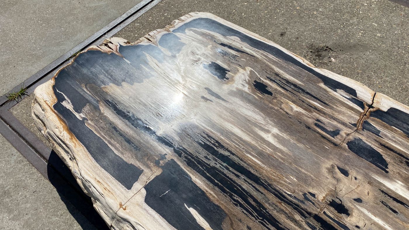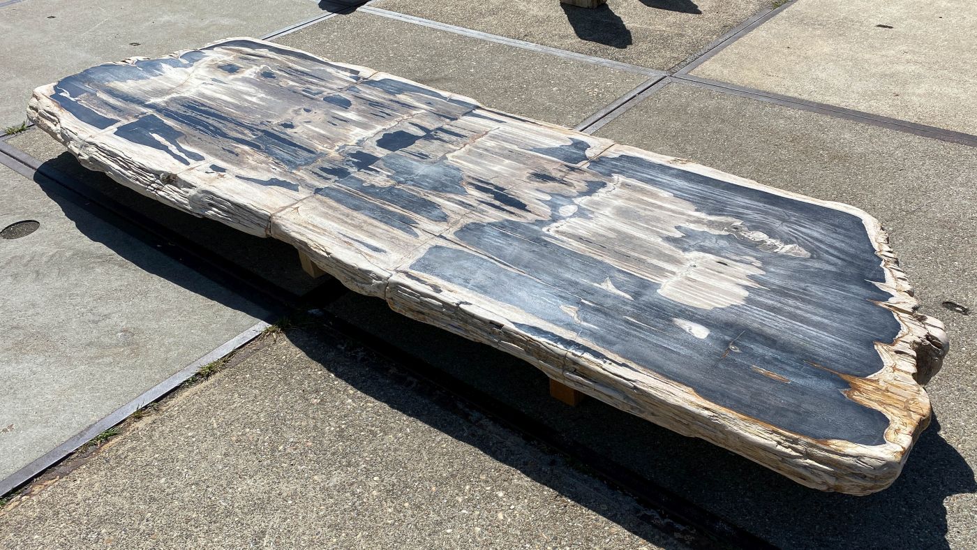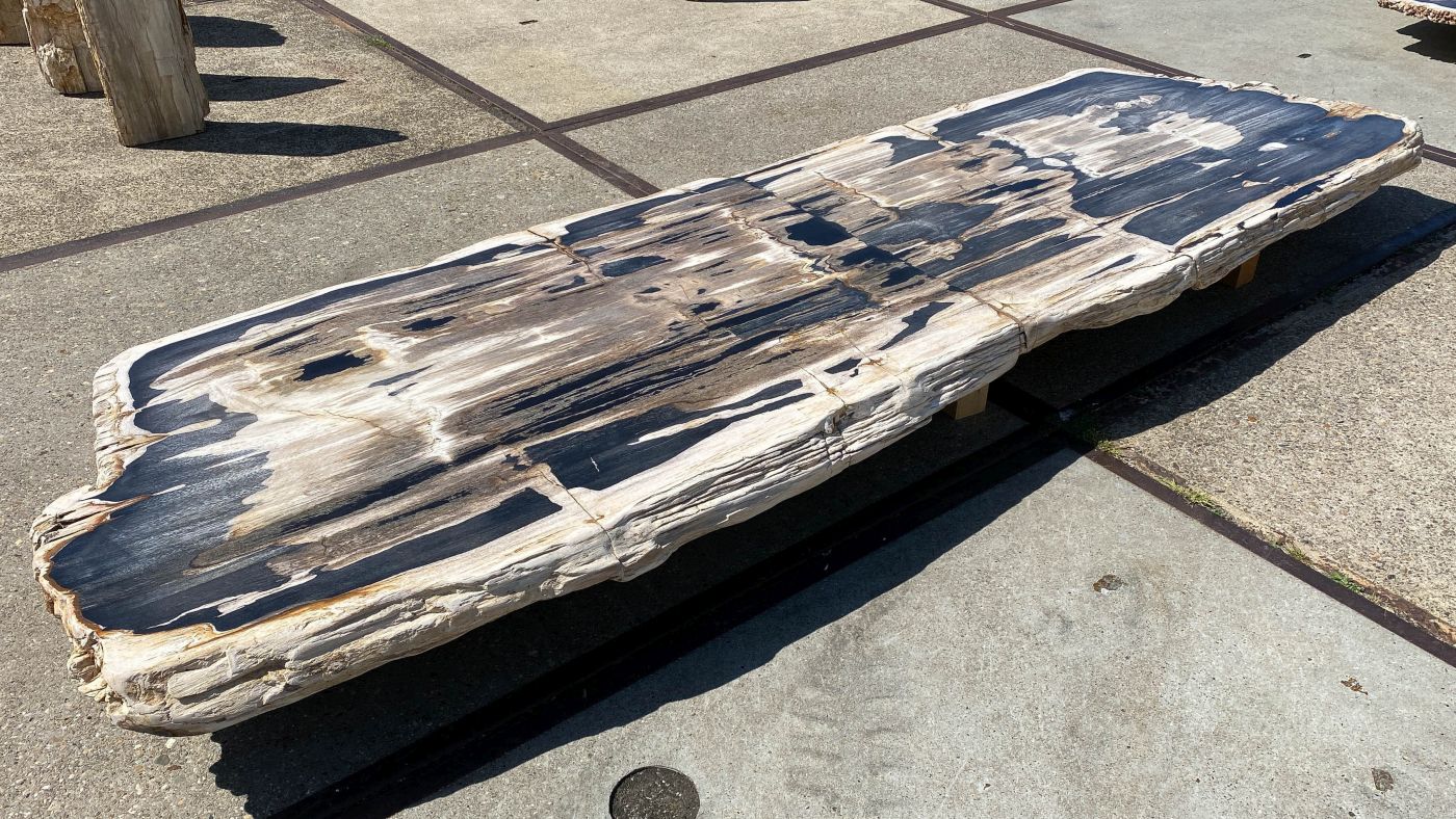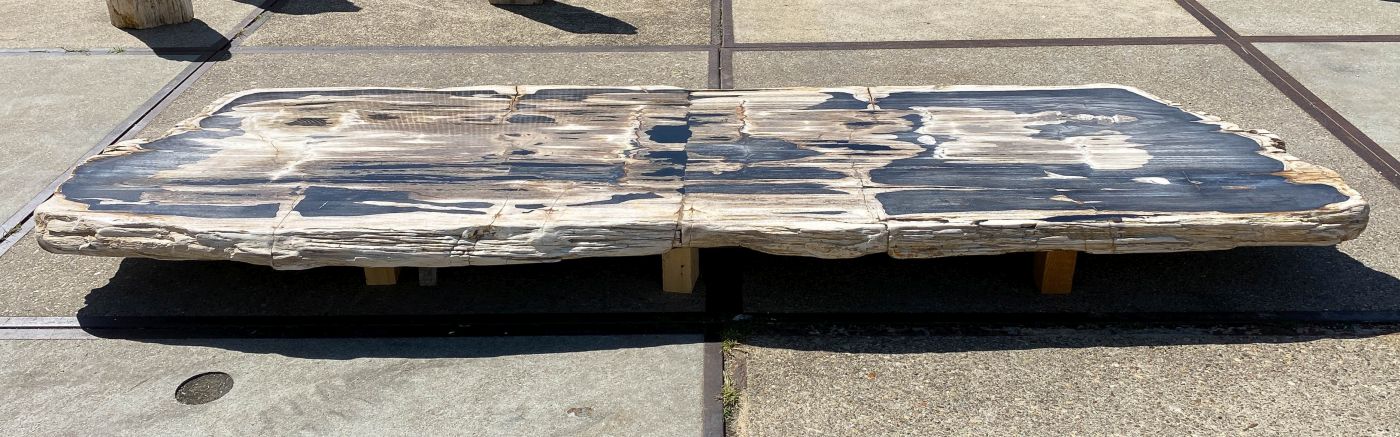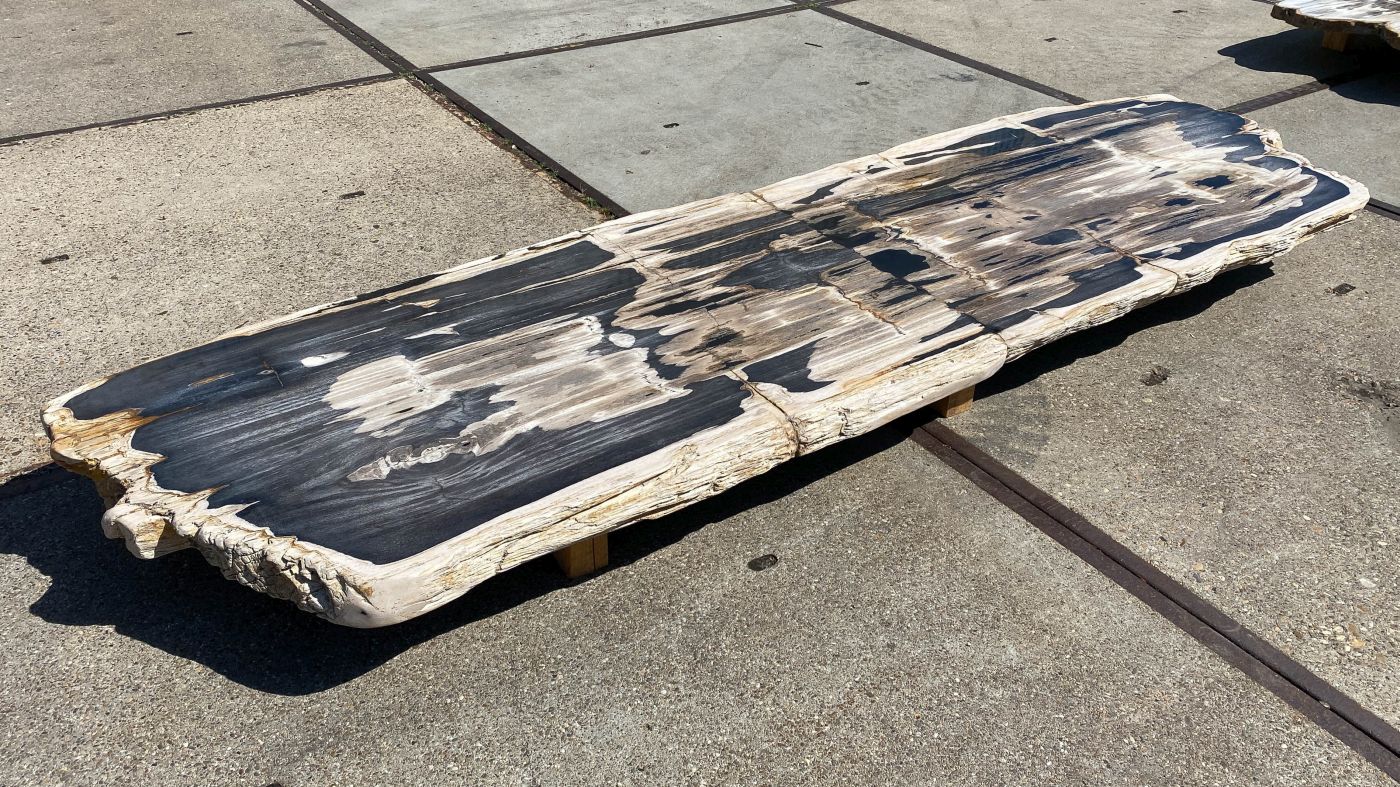 Het is erg moeilijk de schoonheid van versteend hout in een foto te vatten. We nodigen u daarom van harte uit deze tafel in onze showroom te komen bekijken, maar bestellen via de website kan natuurlijk ook.